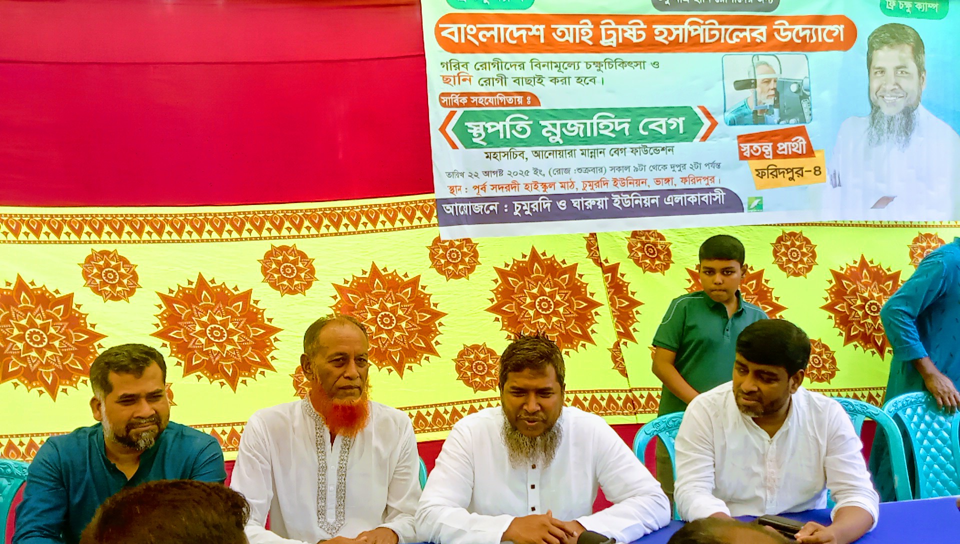 জানা গেছে , বেসরকারি চক্ষু সেবামূলক প্রতিষ্ঠান আনোয়ারা মান্নান বেগ ফাউন্ডেশন ও বাংলাদেশ আই ট্রাষ্ট হসপিটালের উদ্যোগে এ কার্যক্রমের আয়োজন করা হয়। চক্ষু ক্যাম্পের উদ্বোধণ করেন আনোয়ারা মান্নান বেগ ফাউন্ডেশন এর মহাসচিব স্থপতি মুজাহিদ বেগ। তিনি আসছে জাতীয় সংসদ নির্বাচনে ফরিদপুর-৪ আসনের স্বতন্ত্র সংসদ সদস্য প্রার্থী।