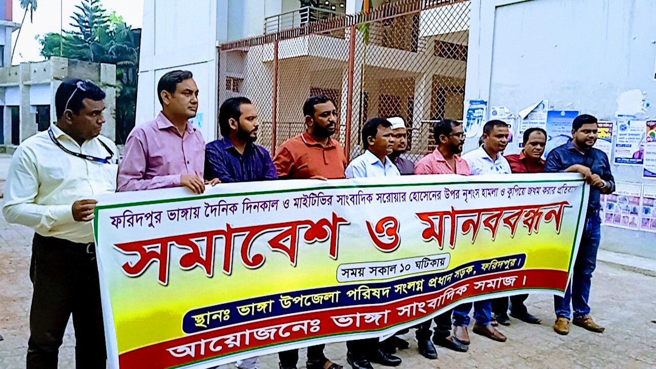 ফরিদপুর, ৭ অক্টোবর – ভাঙ্গা উপজেলা সাংবাদিক সমাজের উদ্যোগে সাংবাদিকদের ওপর হামলা ও নির্যাতনের প্রতিবাদে মানববন্ধন ও সমাবেশ অনুষ্ঠিত হয়েছে।