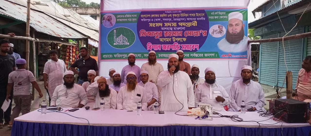 “আপনাদের পাশে থেকে সেবা করতে চাই, আপনাদের ভালোবেসে যেতে চাই, আর আপনাদের ভালোবাসা নিয়েই আমিও ভালো থাকতে চাই”— এমন মন্তব্য করেছেন ফরিদপুর-৪ (ভাঙ্গা, সদরপুর, চরভদ্রাসন) আসনের সম্ভাব্য সংসদ সদস্য পদপ্রার্থী ও বাংলাদেশ খেলাফত মজলিসের কেন্দ্রীয় নেতা মাওলানা মিজানুর রহমান মোল্লা।