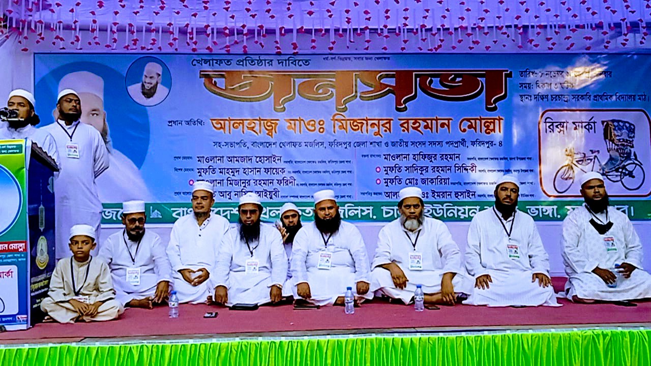 ফরিদপুরের ভাঙ্গা উপজেলার আজিমনগর ইউনিয়নের দক্ষিণ চরচান্দ্রা সরকারি প্রাথমিক বিদ্যালয় মাঠে বাংলাদেশ খেলাফত মজলিসের চরচান্দ্রা ইউনিয়ন শাখার উদ্যোগে এক ঐতিহাসিক জনসভা অনুষ্ঠিত হয়েছে। শনিবার (৮ নভেম্বর ২০২৫) বিকেল ৩টায় শুরু হওয়া এই জনসভায় হাজারো মুসল্লি, নেতাকর্মী ও সাধারণ মানুষের ঢল নামে।