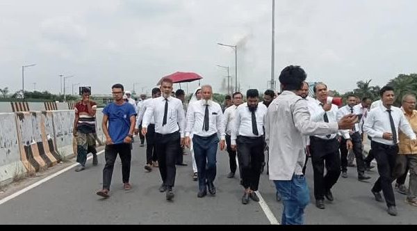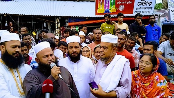 “১২টি ইউনিয়ন ও একটি পৌরসভা মিলে আমরা ভাঙ্গা উপজেলা বাসী এক আত্মার বন্ধনে এক পরিবার”—এই শ্লোগানে একাত্ম হয়ে ভাঙ্গার সাধারণ মানুষ সড়কে নেমেছেন। শুক্রবার সকালে ভাঙ্গা স্ট্যান্ড এলাকায় প্রধান সড়ক
